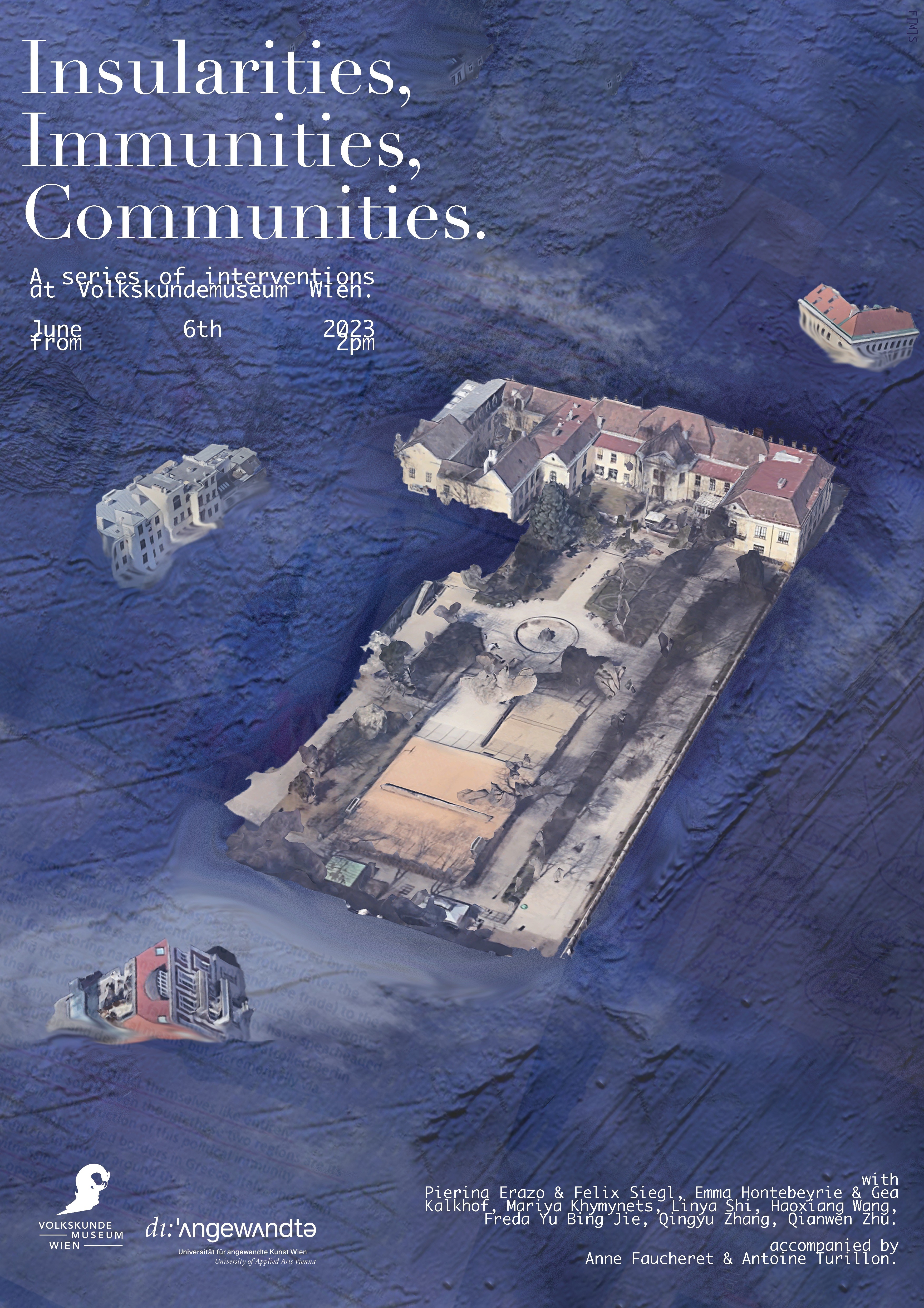 In the framework of our one-semester class in the department of Artistic Strategies from the University of Applied Arts Vienna, we, a group of students, teachers and practitioners, investigated the interrelated topics of insularities, immunities and communities through texts, artistic practices, and collective reflection on site at the Volkskundemuseum Vienna.
