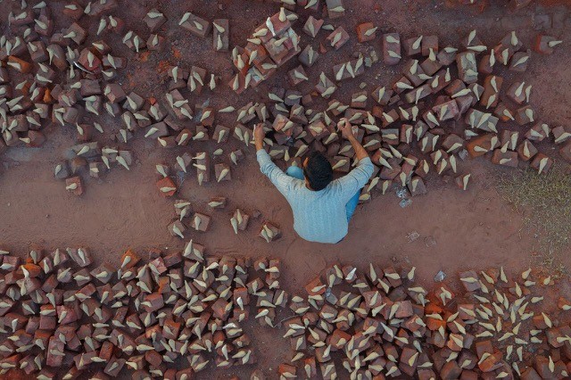 getrockneten Vogelplastiken sind, die bei Regen zerfallen, wie er in einer Installation auf der Lahore Biennale 2020 zeigte,