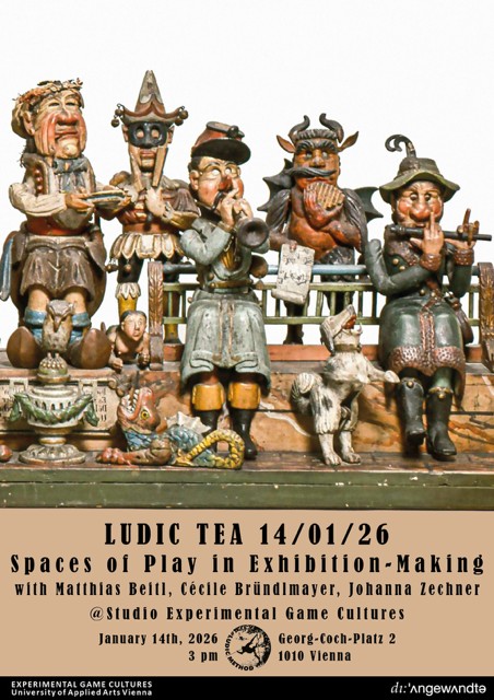 Im Rahmen eines LUDIC TEA — ein von Margarete Jahrmann im Kontext der LUDIC SOCIETY lanciertes spielerisches Vortrags Format, stellen die Direktion und Kurator*innen des Volkskundemuseum Wien Möglichkeiten für eine ethnographisch inspirierte Ausstellung, die wohl spielbar ist, zumindest aber LUDIC METHOD anwendet vor und eröffnet ein Projekt über spielerische Zugänge im Sammeln im Austausch mit der Abteilung  EXPERIMENTAL GAME CULTURES.