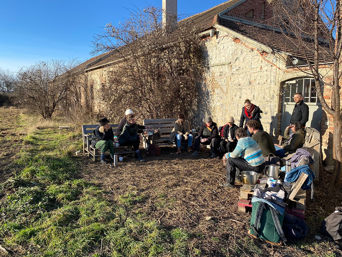 Students on a meadow