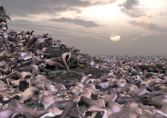 Die titelgebende, algorithmisch gesteuerte Live-Simulation, eine in Echtzeit generierte virtuelle Realität, skizziert eine bedrückende Version der Zukunft: Aus Verzweiflung versammeln sich Menschen in Massen auf dem letzten verbliebenen Stück Erde. Jeder Quadratzentimeter ist dicht gedrängt. Einige versuchen, sich auf Klip-pen zu retten, wo Hunderte Menschen aus Höhen fallen, die sie niemals hätten erklimmen dürfen. In apokalyptischer Bildsprache zeichnet die Künstlerin in der vierten Position der Reihe CREATIVE CLIMATE CARE, einer Kooperation des MAK und der Universität für angewandte Kunst Wien, ein pessimistisches, fiktionales Szenario zu den ökologischen und soziokulturellen Auswirkungen der virulenten Klimakrise.