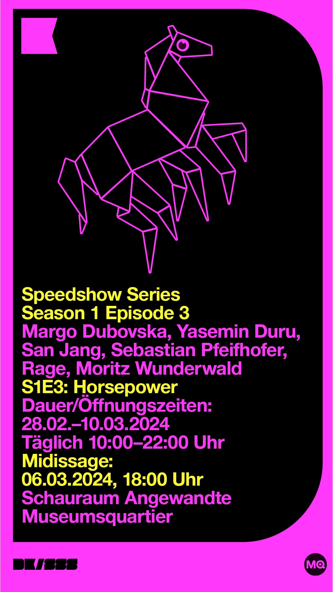 Die Speedshow-Serie ist ein Ausstellungsformat der Universität für angewandte Kunst Wien, kuratiert