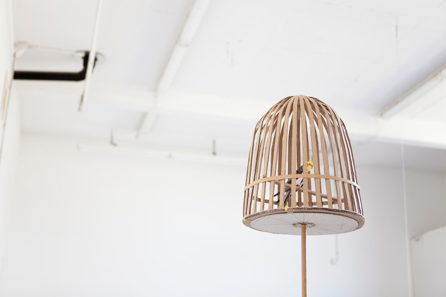 Céline Struger; OK OK OK; Stahl, Steingut, Vogelkäfig, Sittich